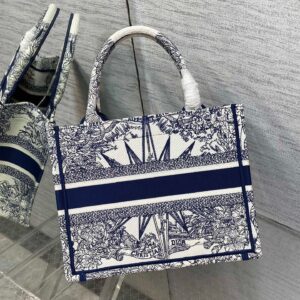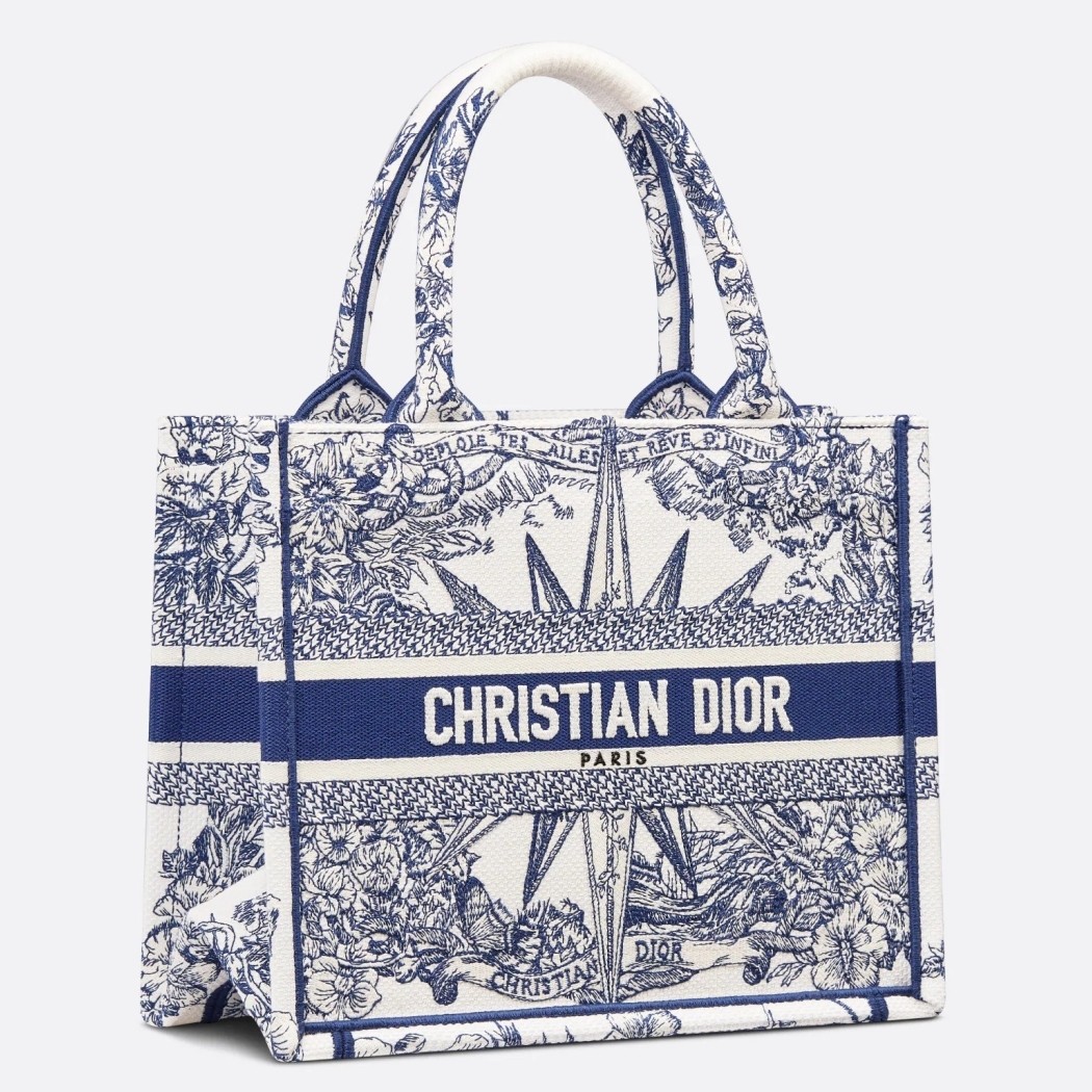 Dior Small Book Tote Bag In White & Blue Rêve d’Infini Embroidery