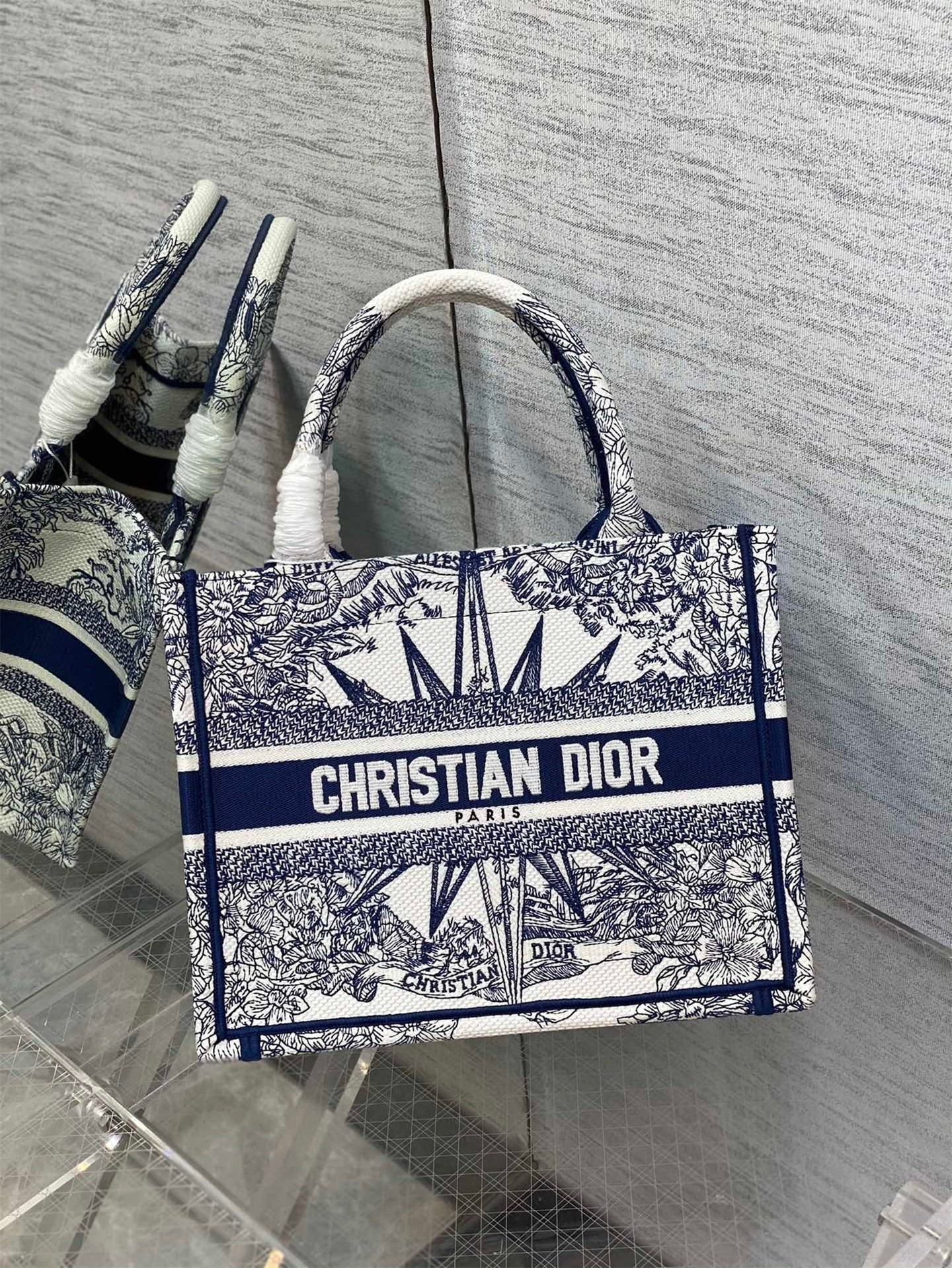 Dior Small Book Tote Bag In White & Blue Rêve d'Infini Embroidery