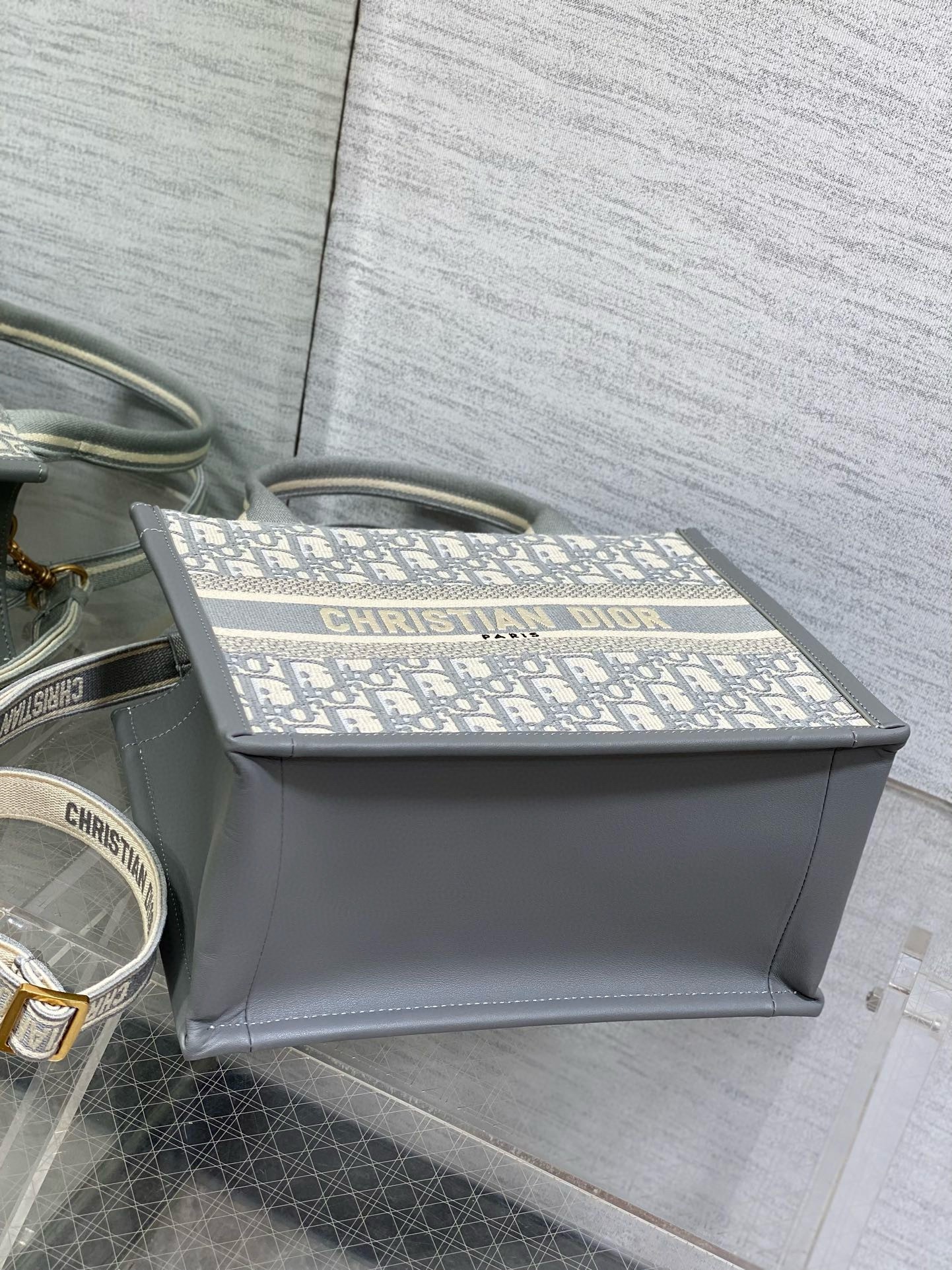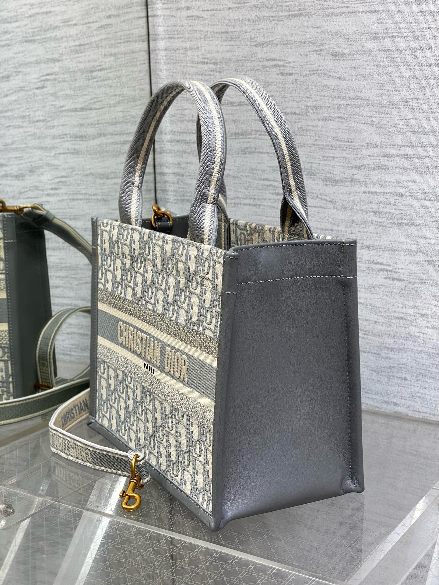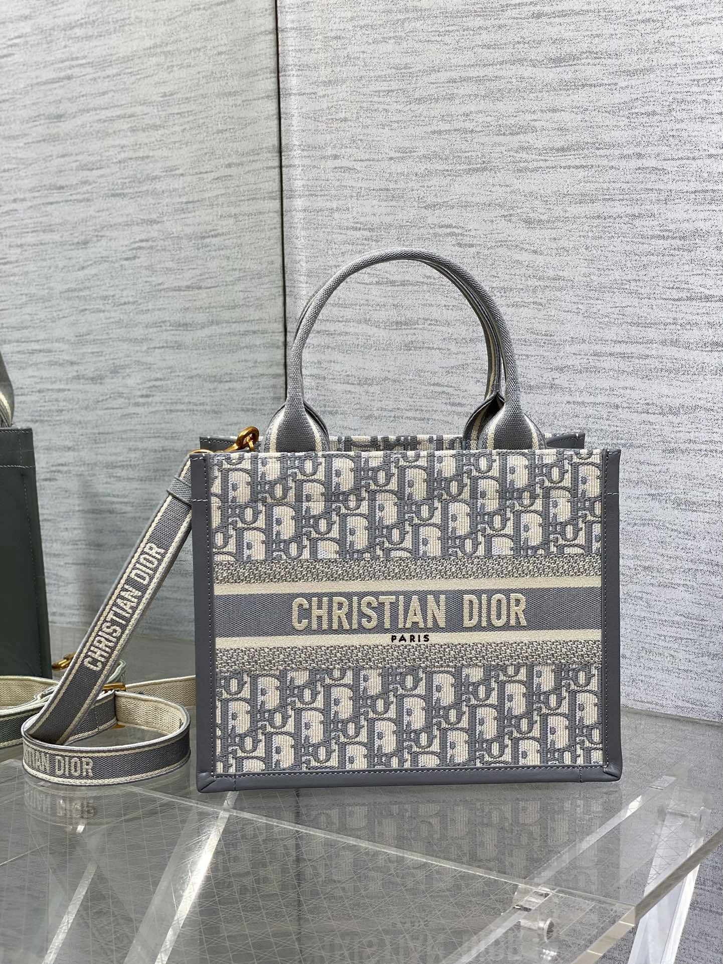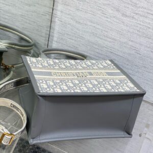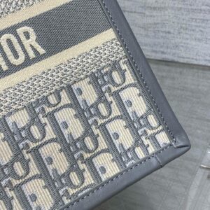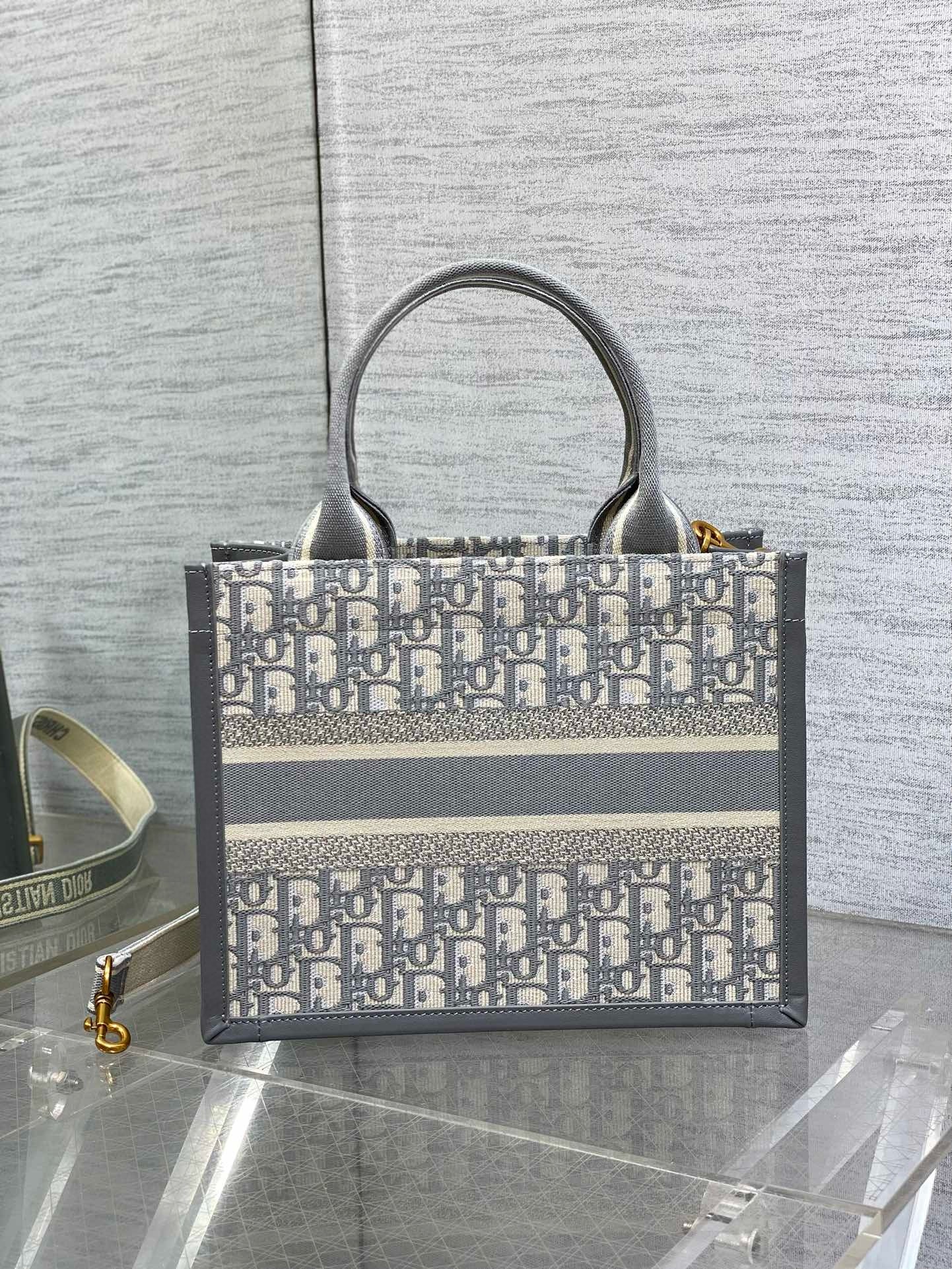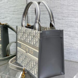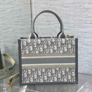 Dior Small Book Tote Bag with Strap in Grey Dior Oblique Canvas