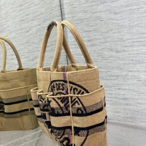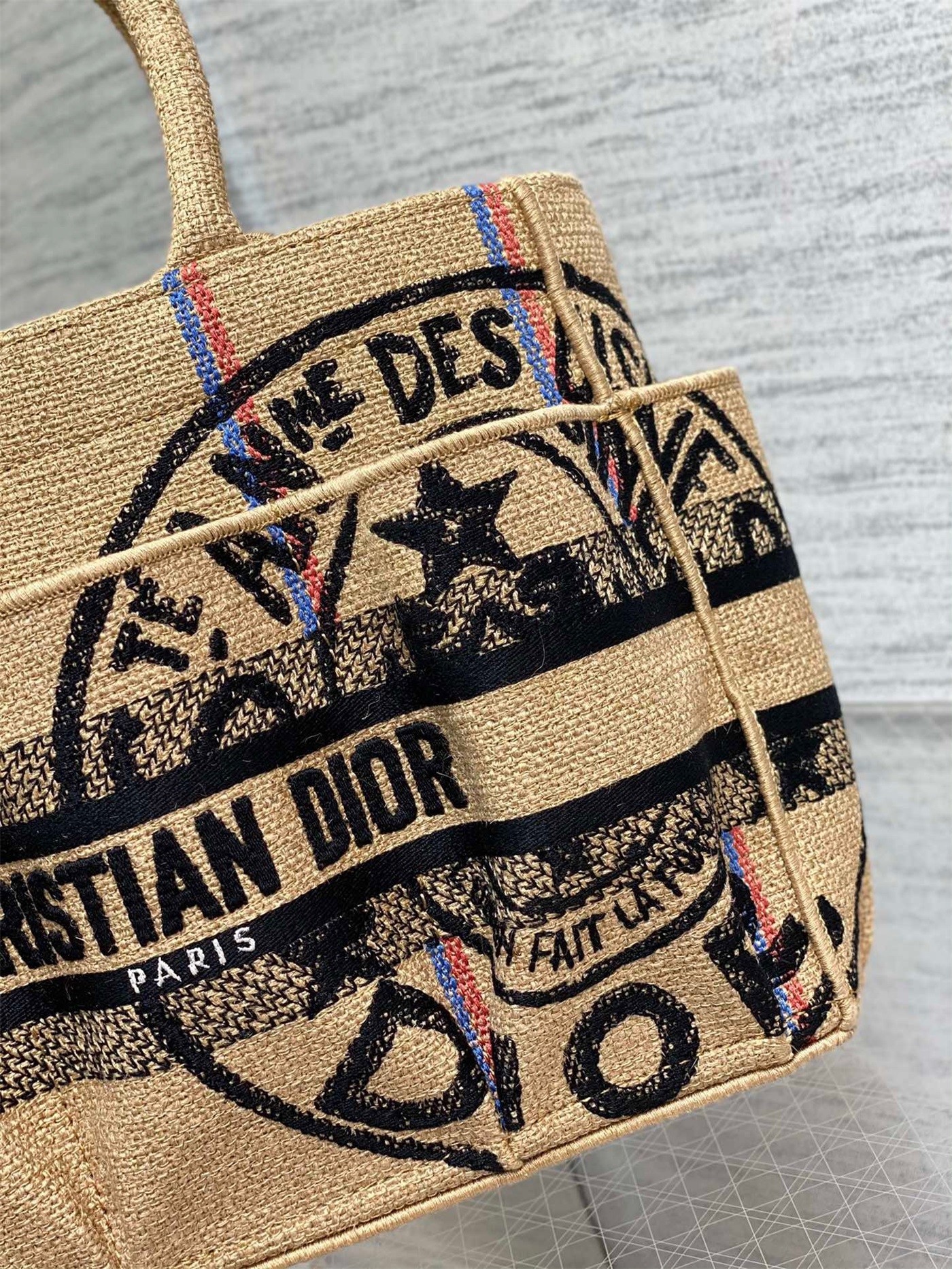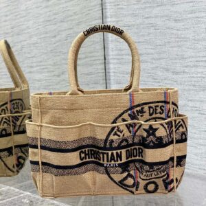 – Beige Jute Canvas Embroidered with Dior Union Motif