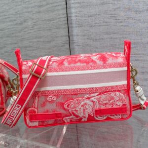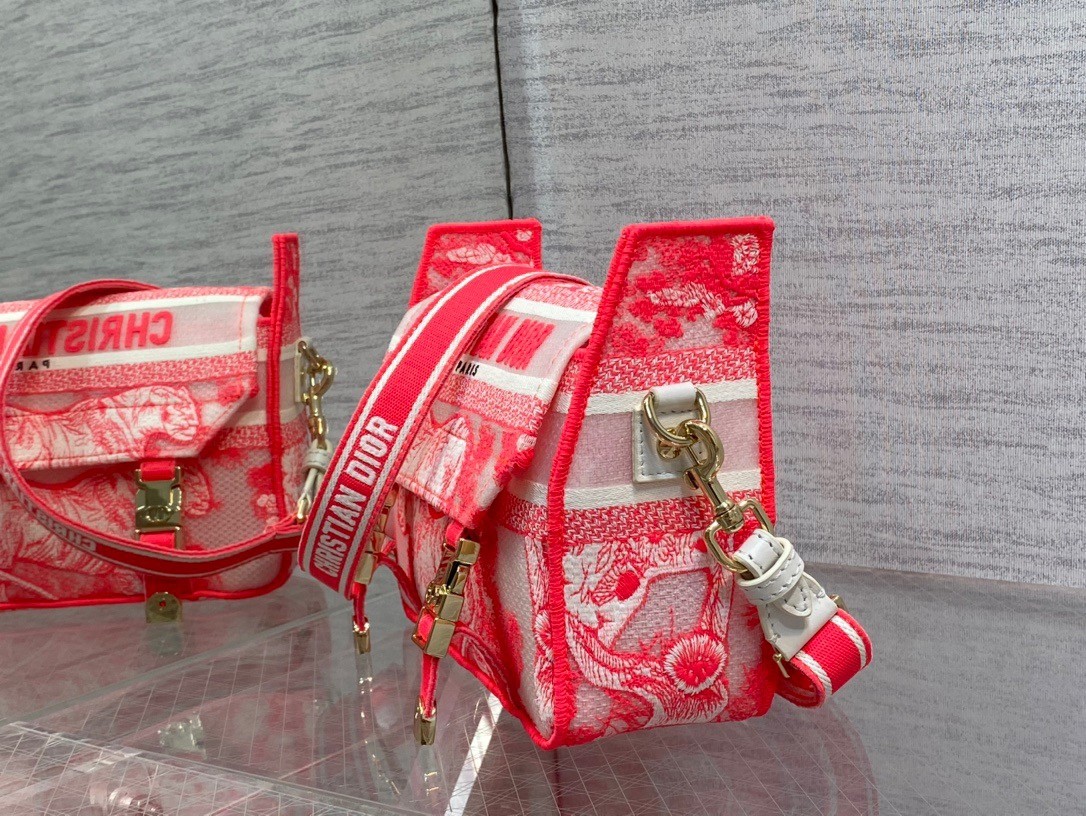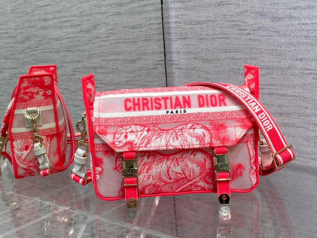 Dior Small Diorcamp Bag In Pink Transparent Toile de Jouy Canvas