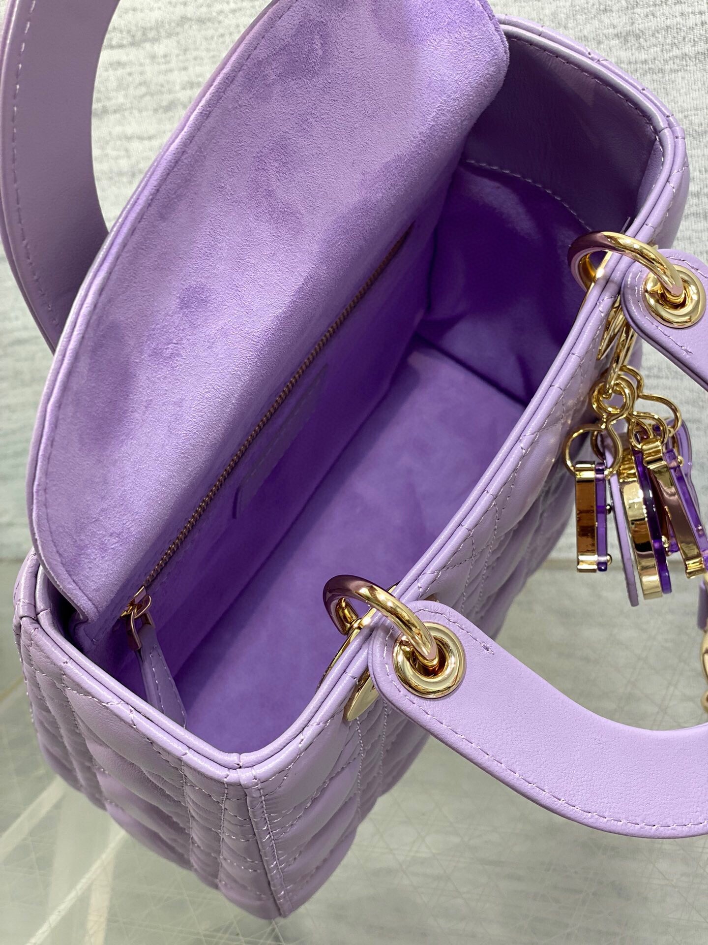 Dior Small Lady Dior Bag in Lilas Lambskin with Resin Charms