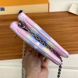 ESCALE POCHETTE DOUBLE ZIP CLUTCH Summer 2020 Escale accessories and leather goods collection presents a special edition Pochette Double Zip clutch. The tie-dye printing depicted on the surface of Monogram Giant canvas conveys the beauty of traditional twist-dyeing process, and the pockets and detachable chains inject flexibility.