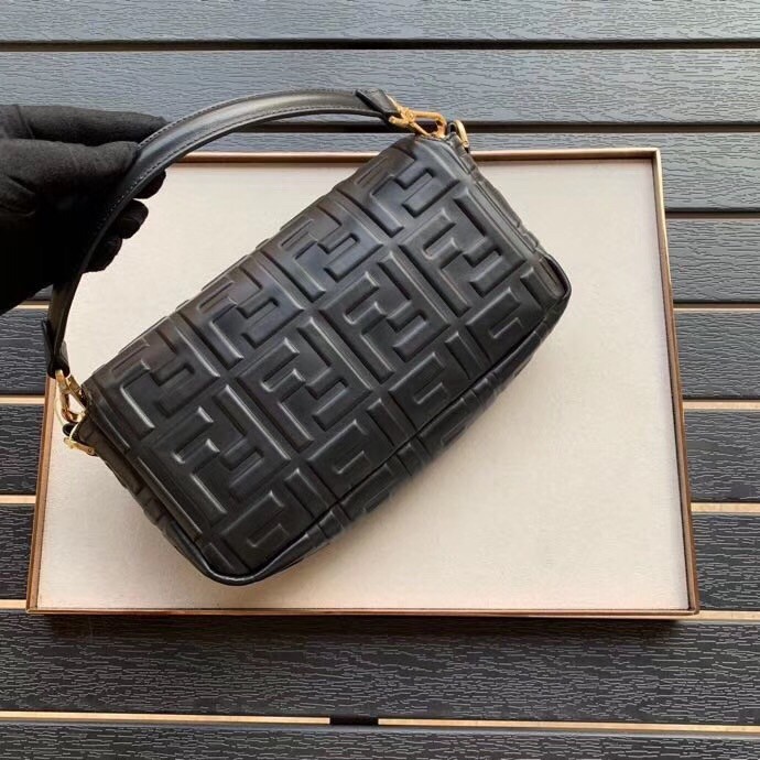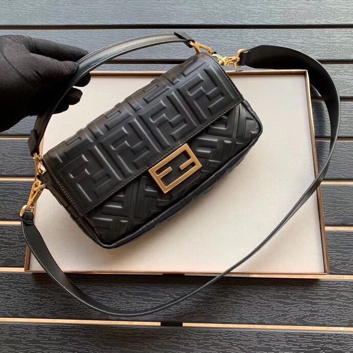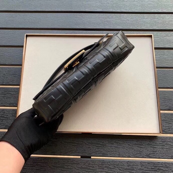 Fendi Black FF Motif Medium Baguette Bag