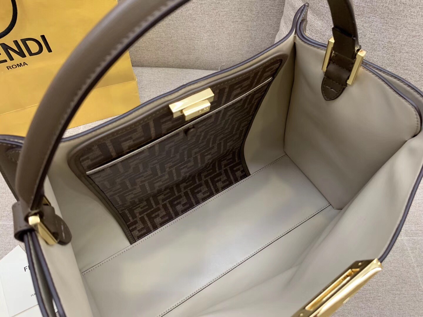 – Glazed fabric interior with tone-on-tone FF motif
