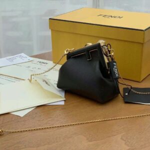 Fendi First Nano Charm Bag In Black Nappa Leather