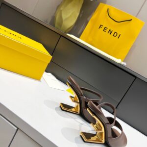 Fendi First Sandals 95mm In Dark Brown Calfskin