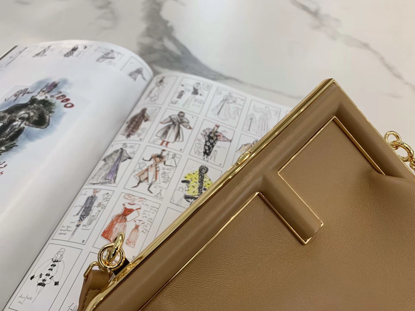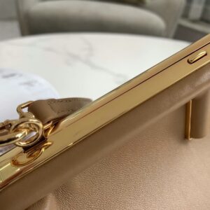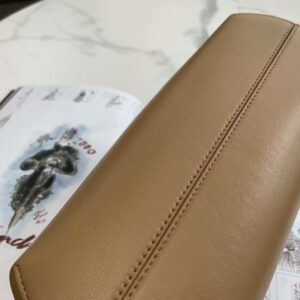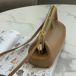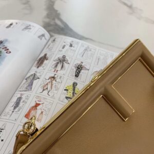 – Oversized metal F clasp bound with tone on tone nappa leather
