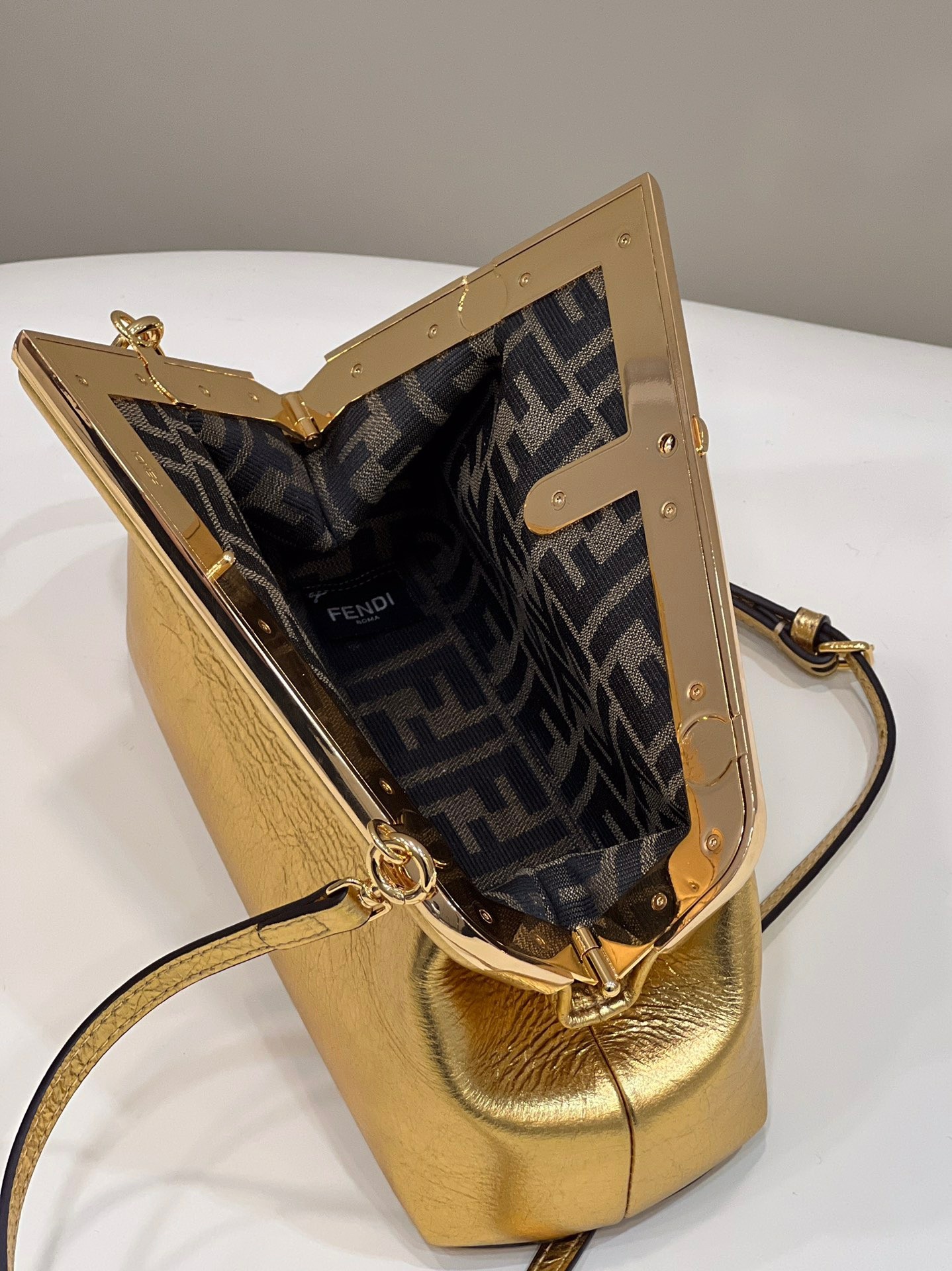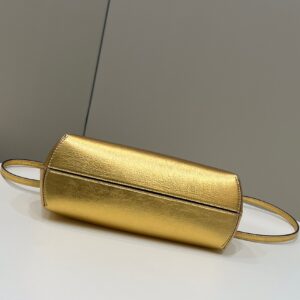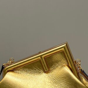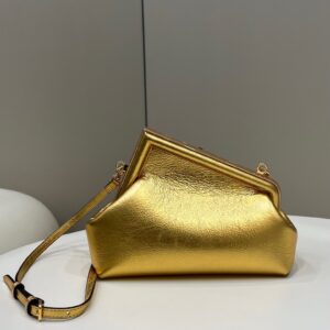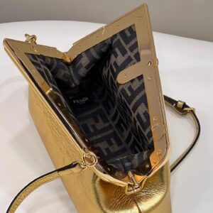 – Oversized metal F clasp bound with tone on tone nappa leather