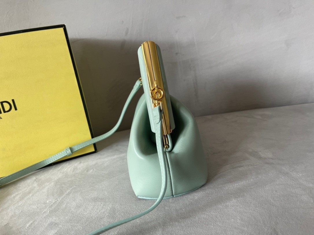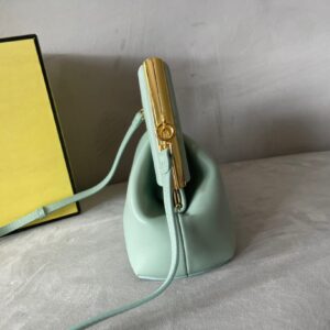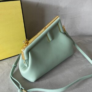 – Oversized metal F clasp bound with tone on tone nappa leather