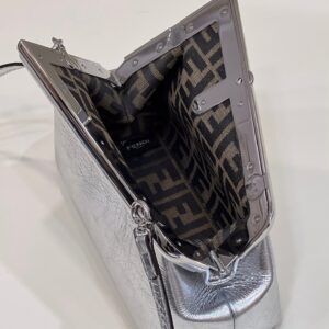 – Oversized metal F clasp bound with tone on tone nappa leather