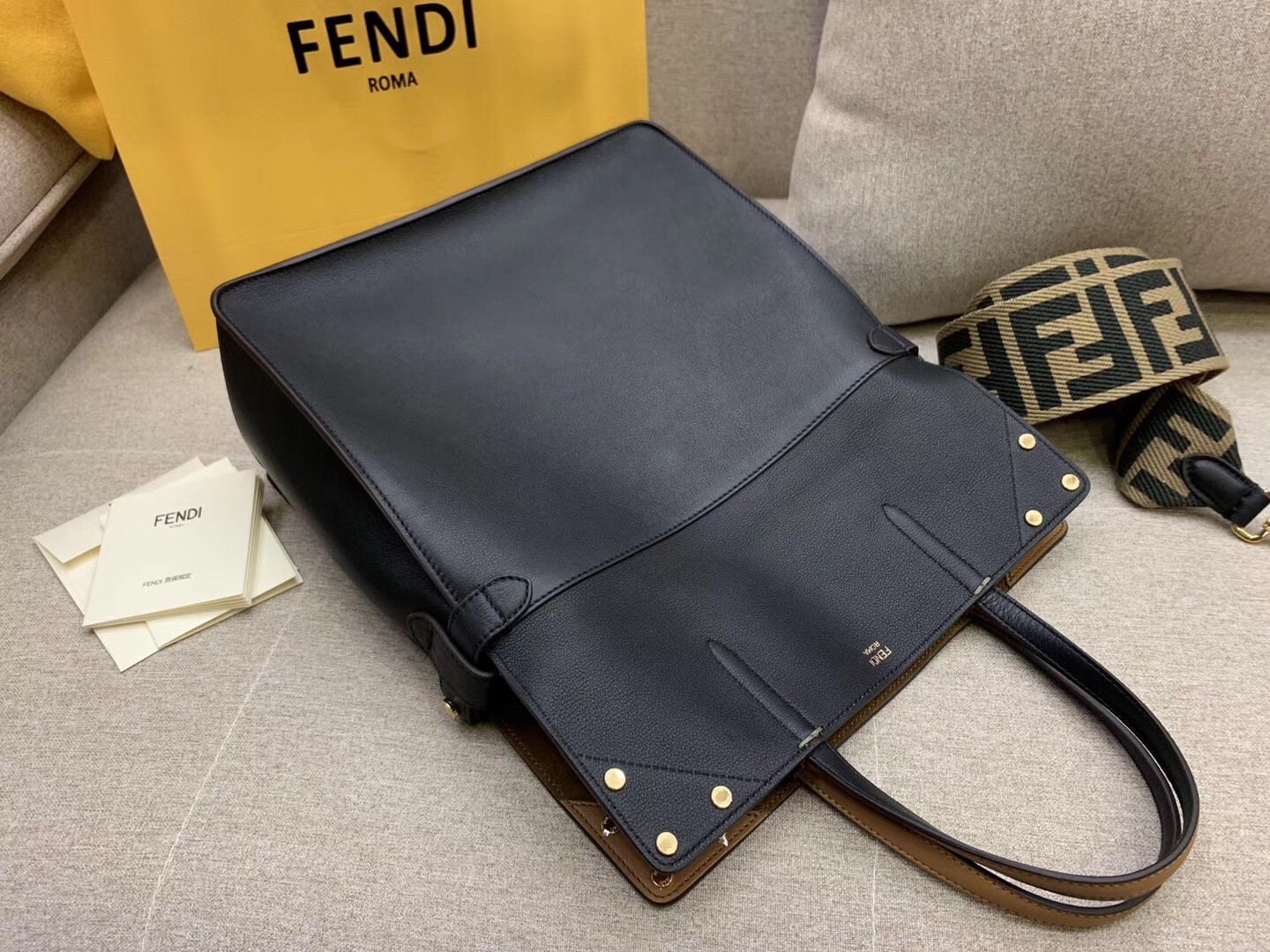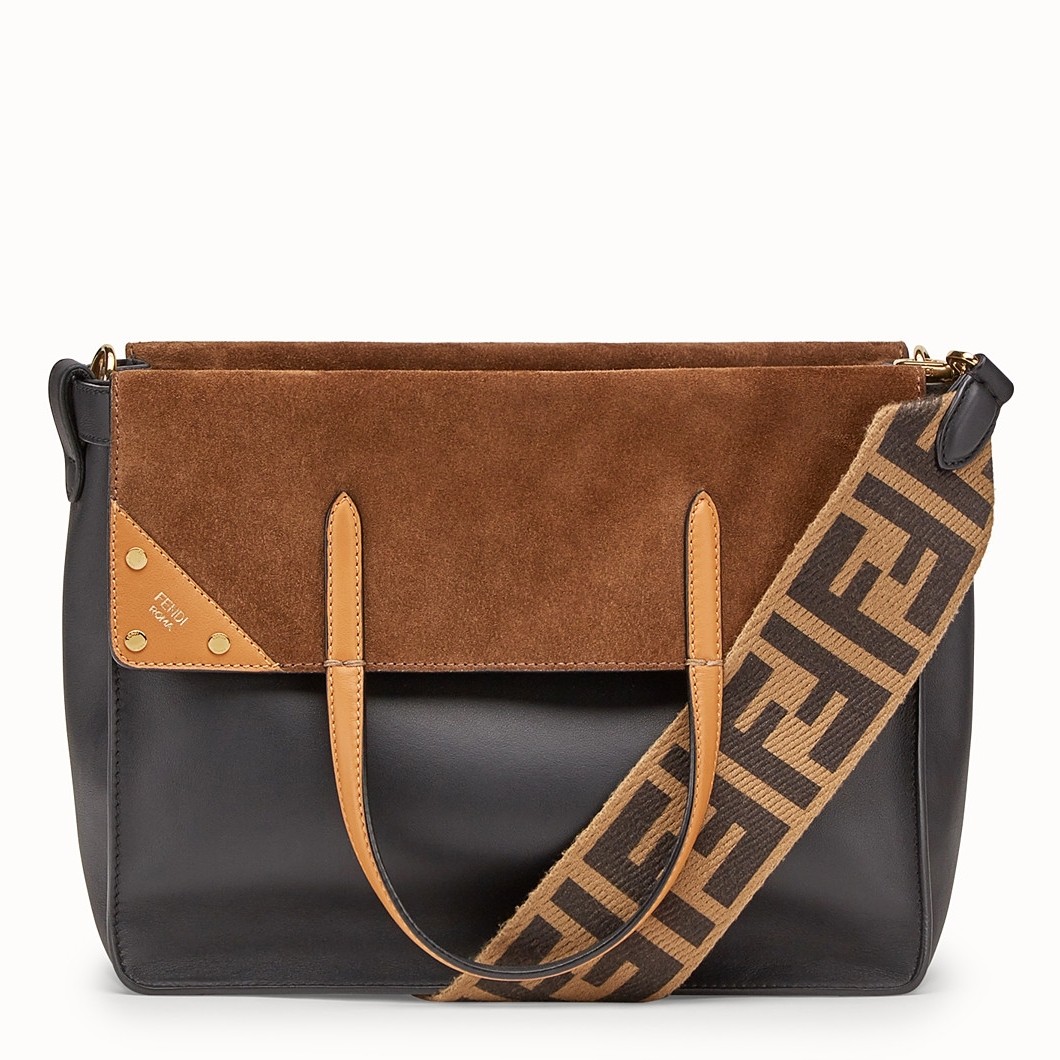 Fendi Large Flip Tote Bag In Black Calfskin