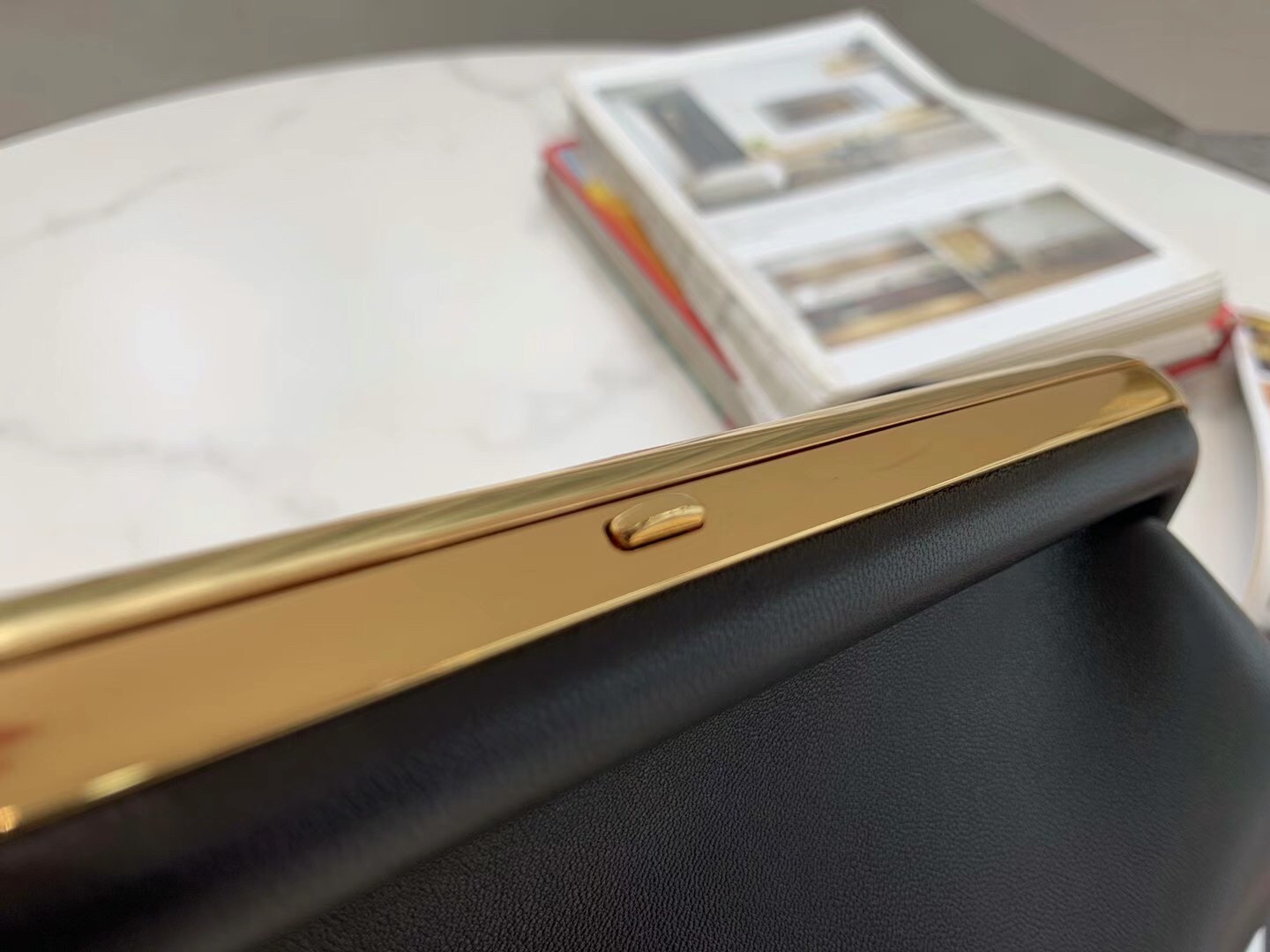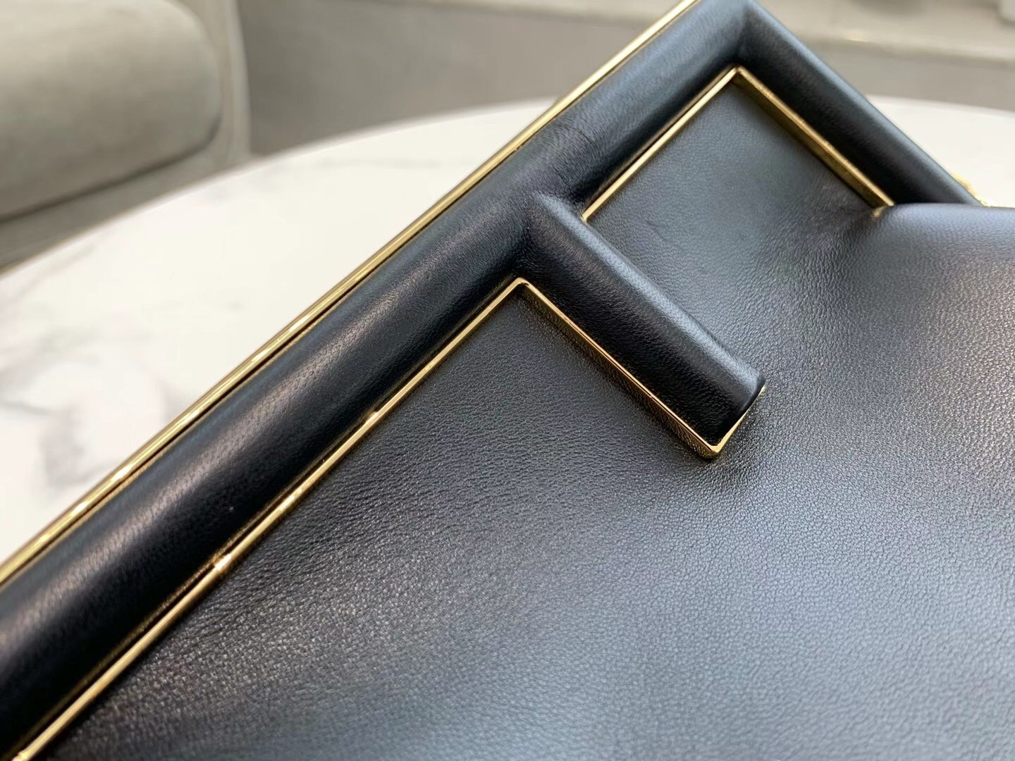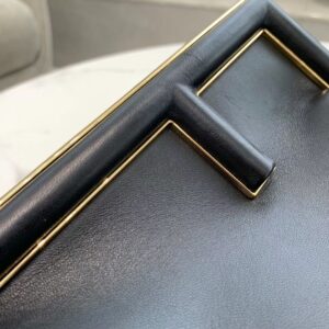 – Oversized metal F clasp bound with tone on tone nappa leather