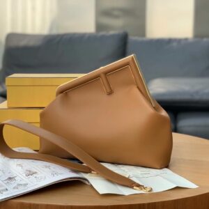 – Oversized metal F clasp bound with tone on tone nappa leather