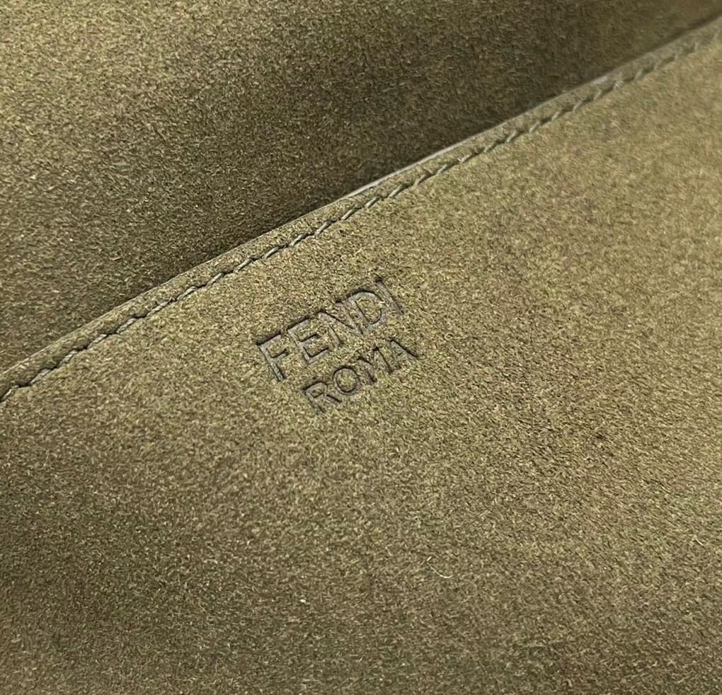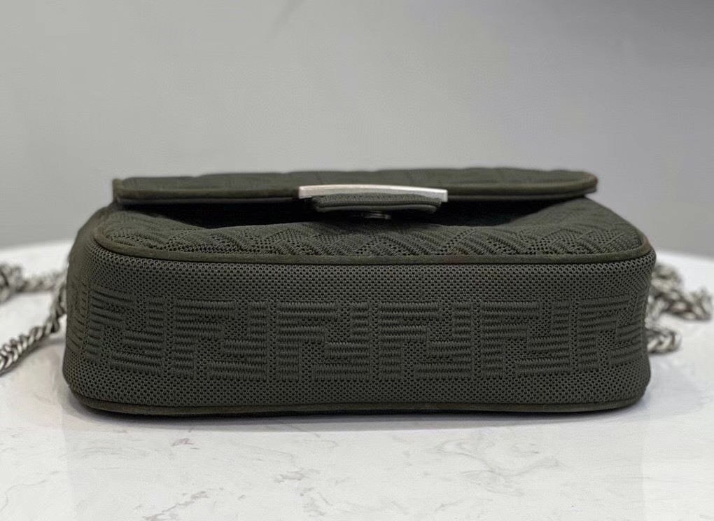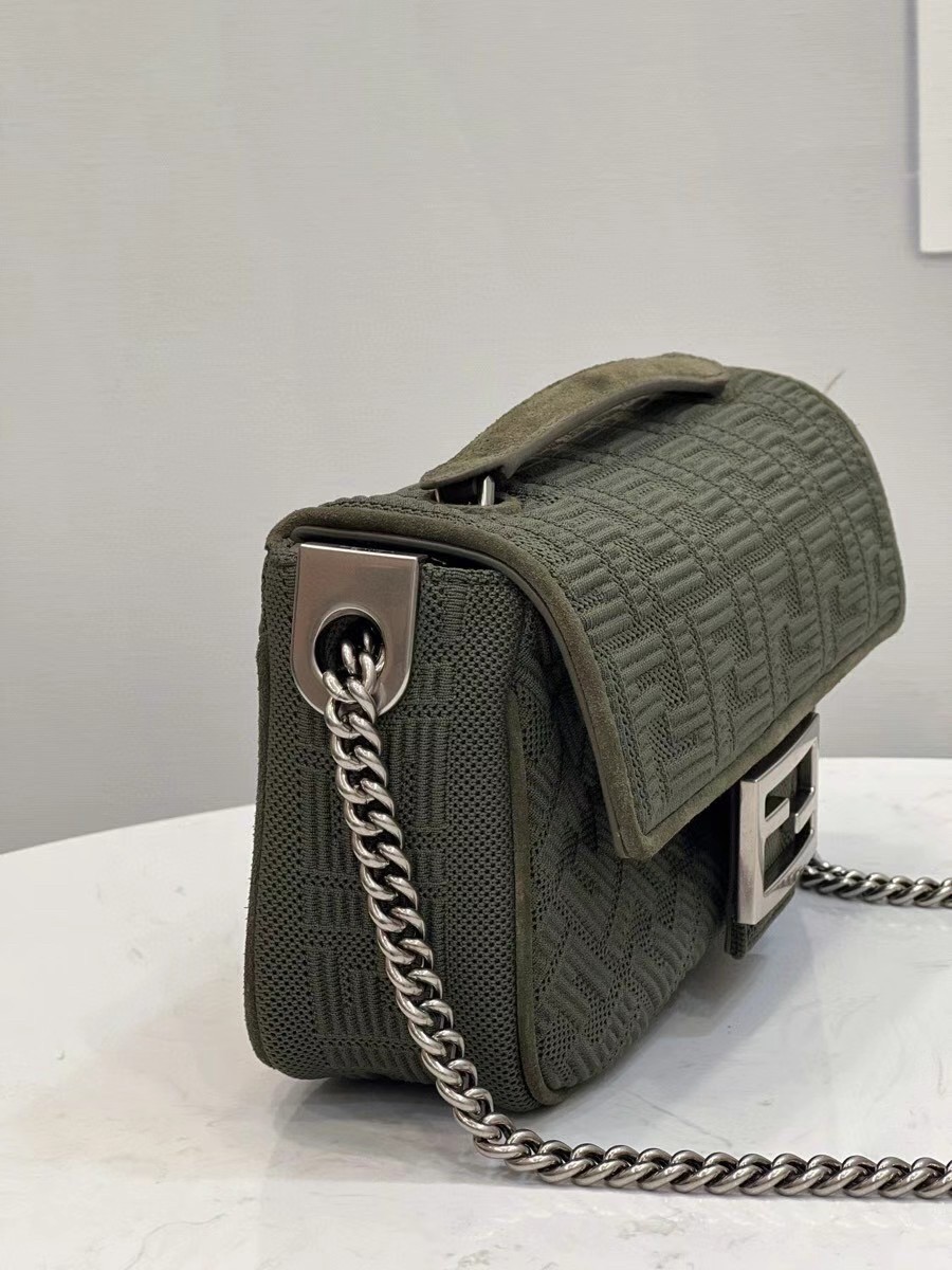 Fendi Midi Baguette Chain Bag In Green FF Fabric