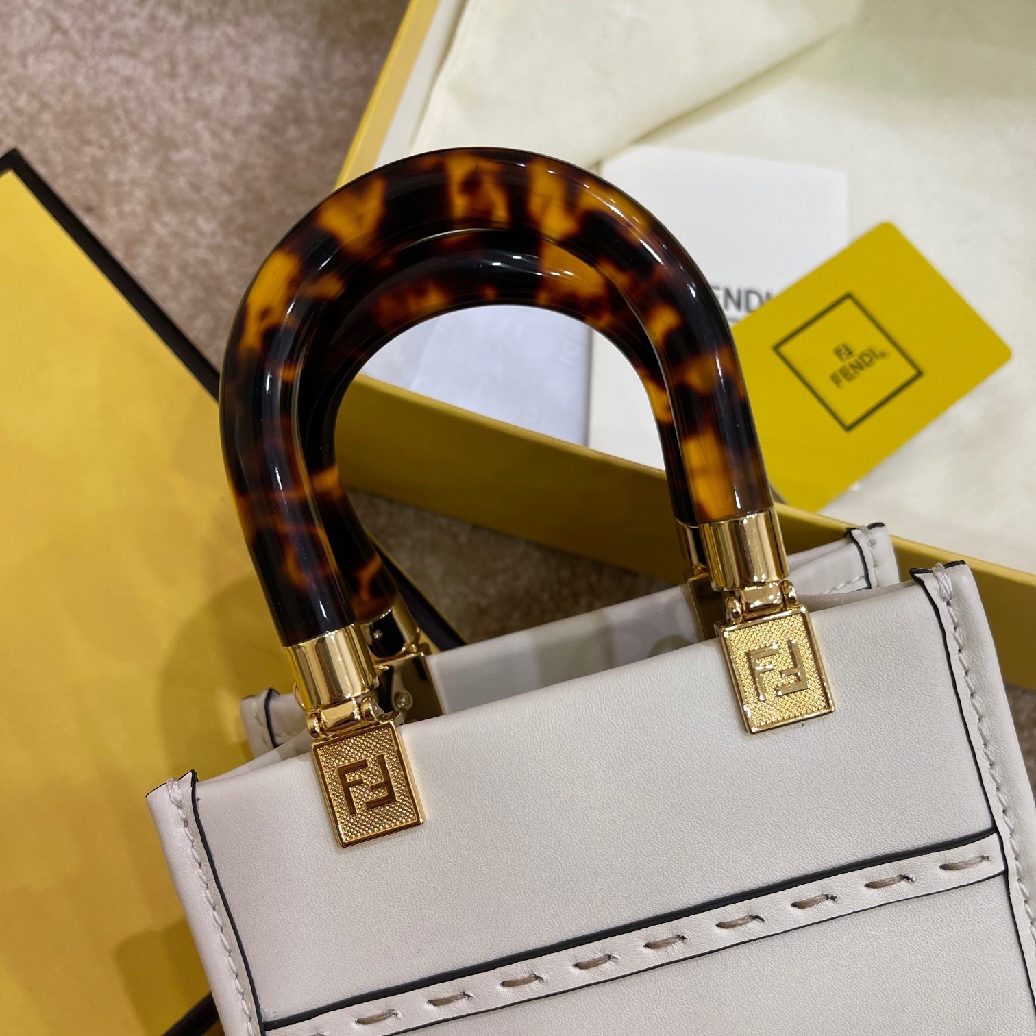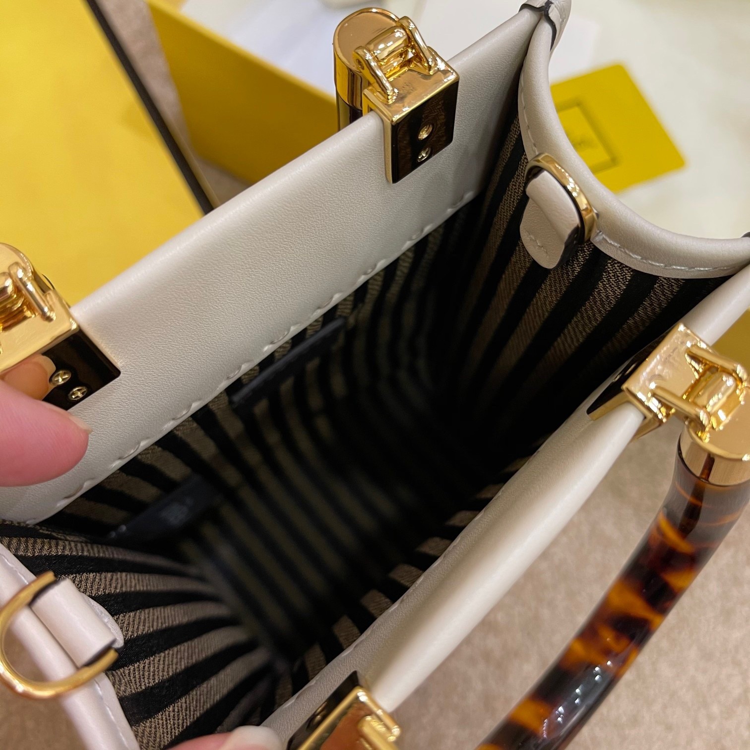 Fendi Mini Sunshine Shopper Bag In White Leather