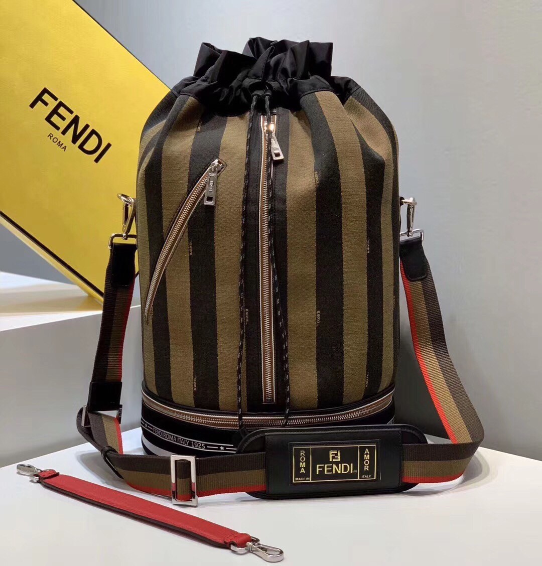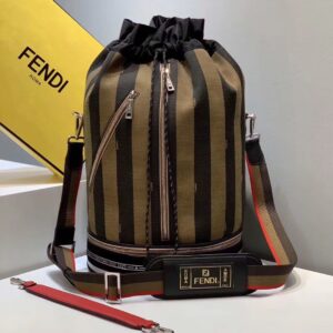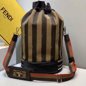 Fendi Mon Tresor Drawstring Bag In Pequin Striped Fabric