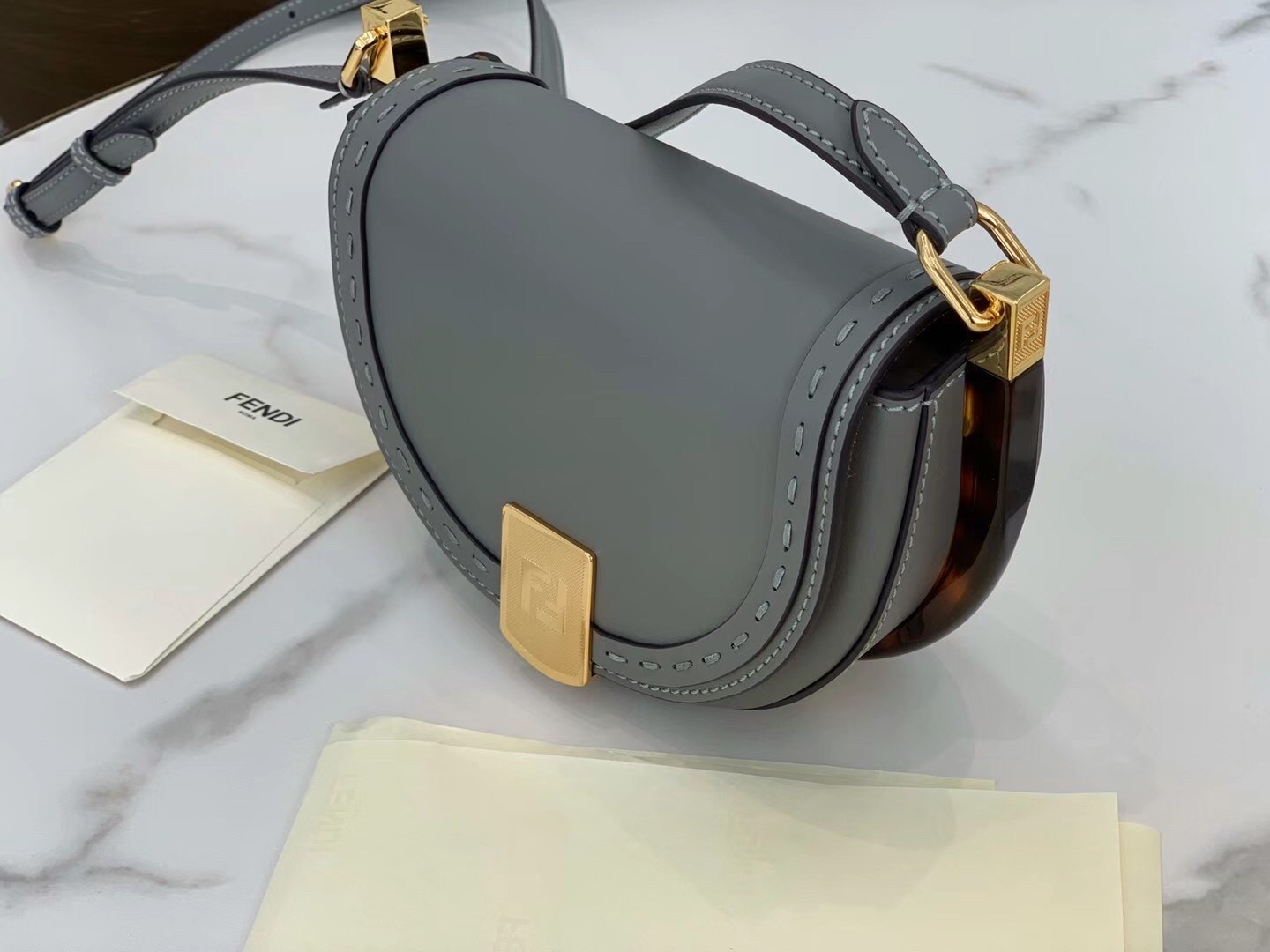 Fendi Moonlight Saddle Bag In Grey Calfskin