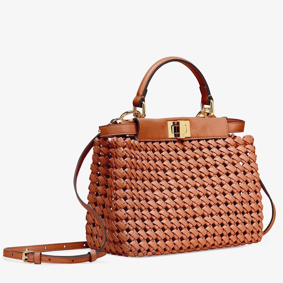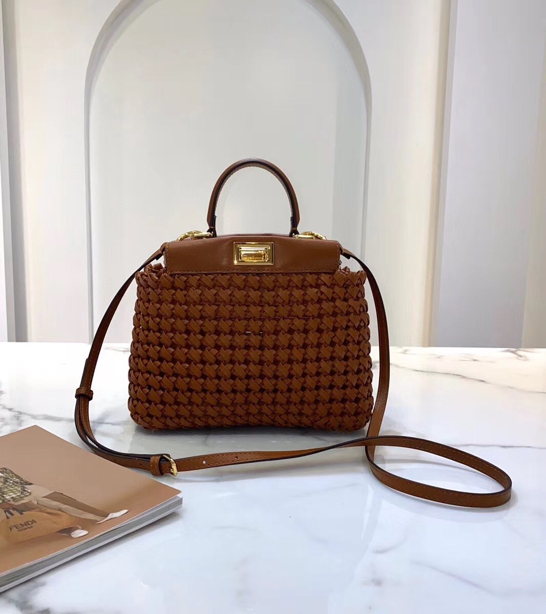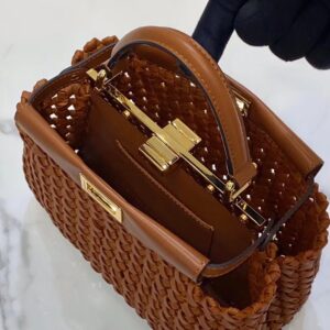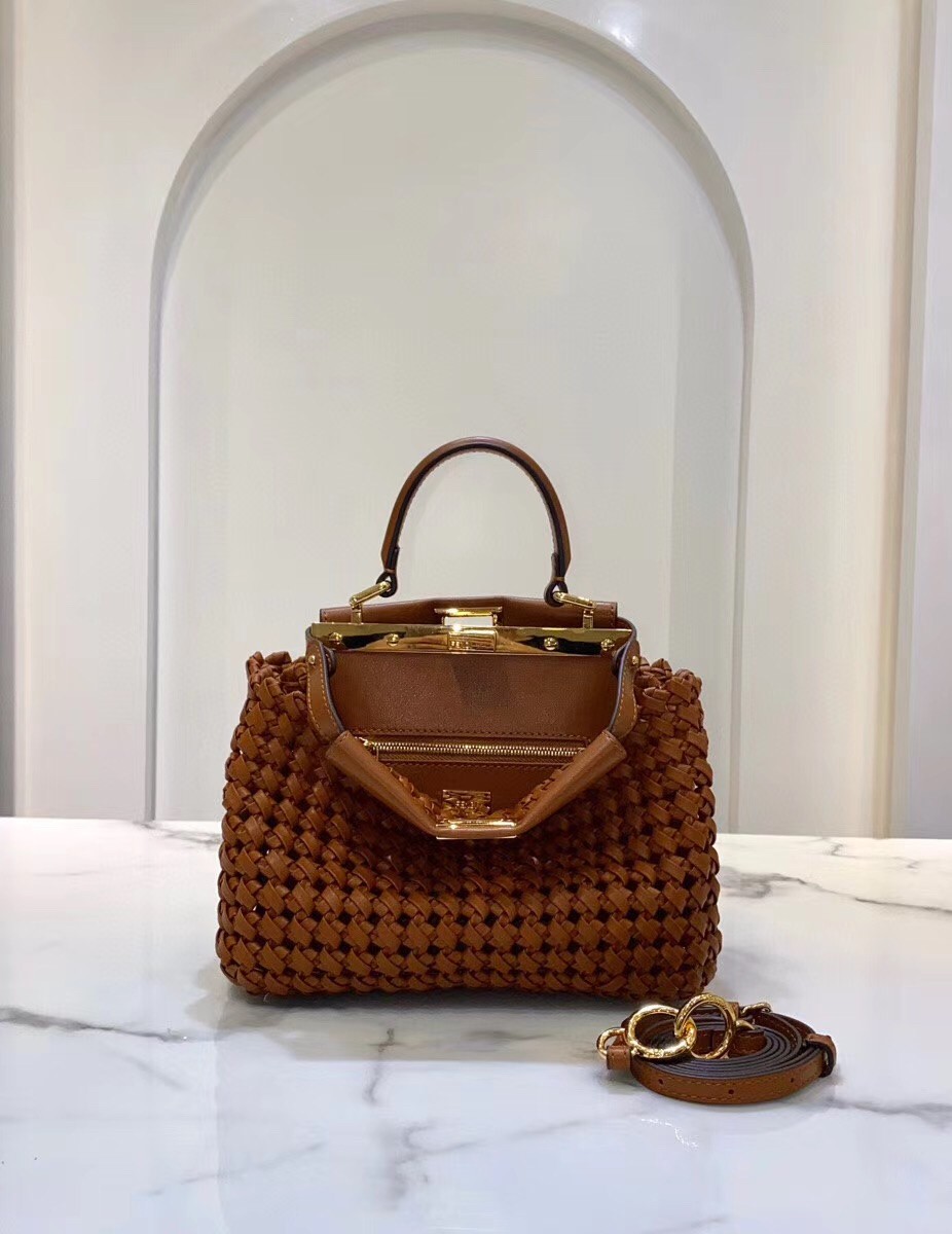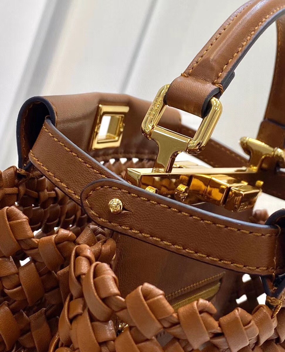 Fendi Peekaboo Mini Bag In Brown Interlace Leather
