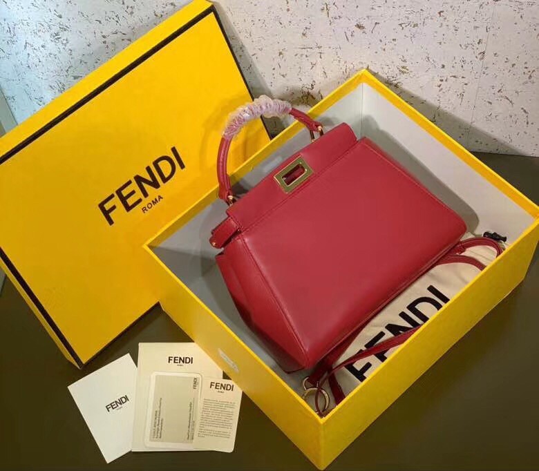 Fendi Peekaboo Mini Bag In Red Nappa Leather