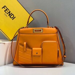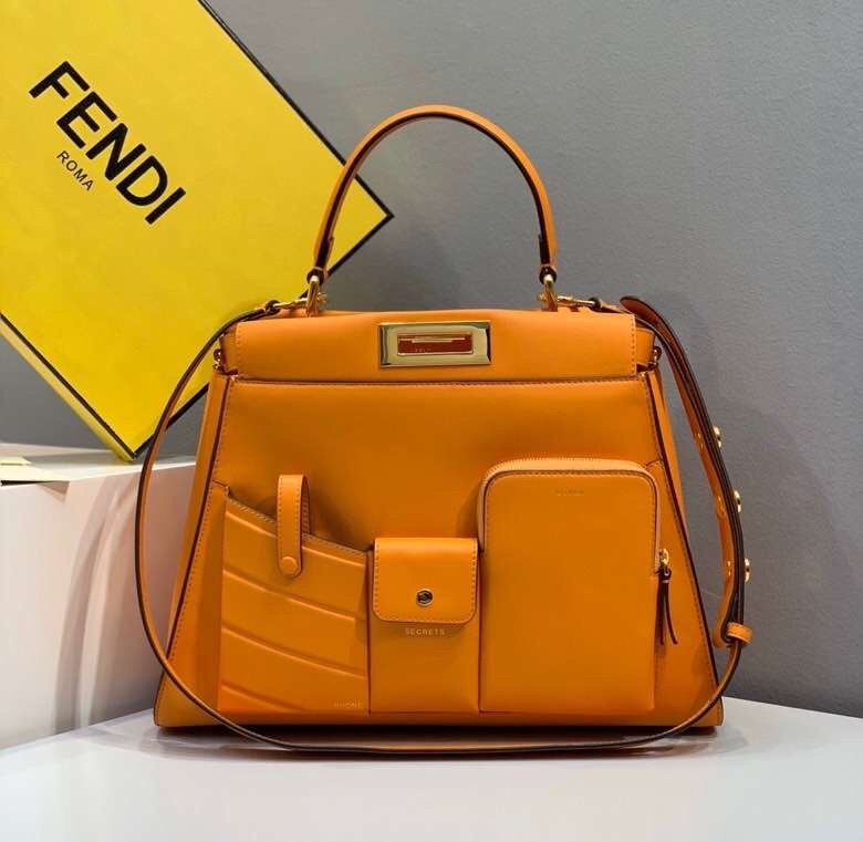 Fendi Peekaboo Pocket Medium Bag In Orange Calfskin