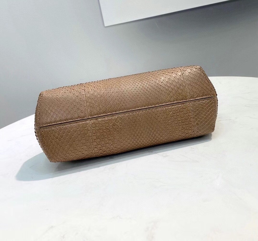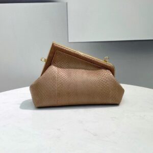 – Oversized metal F clasp bound with tone on tone nappa leather