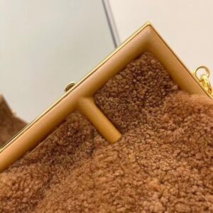 – Oversized metal F clasp bound with tone on tone nappa leather