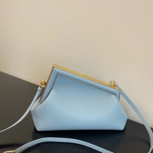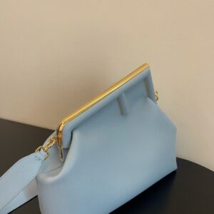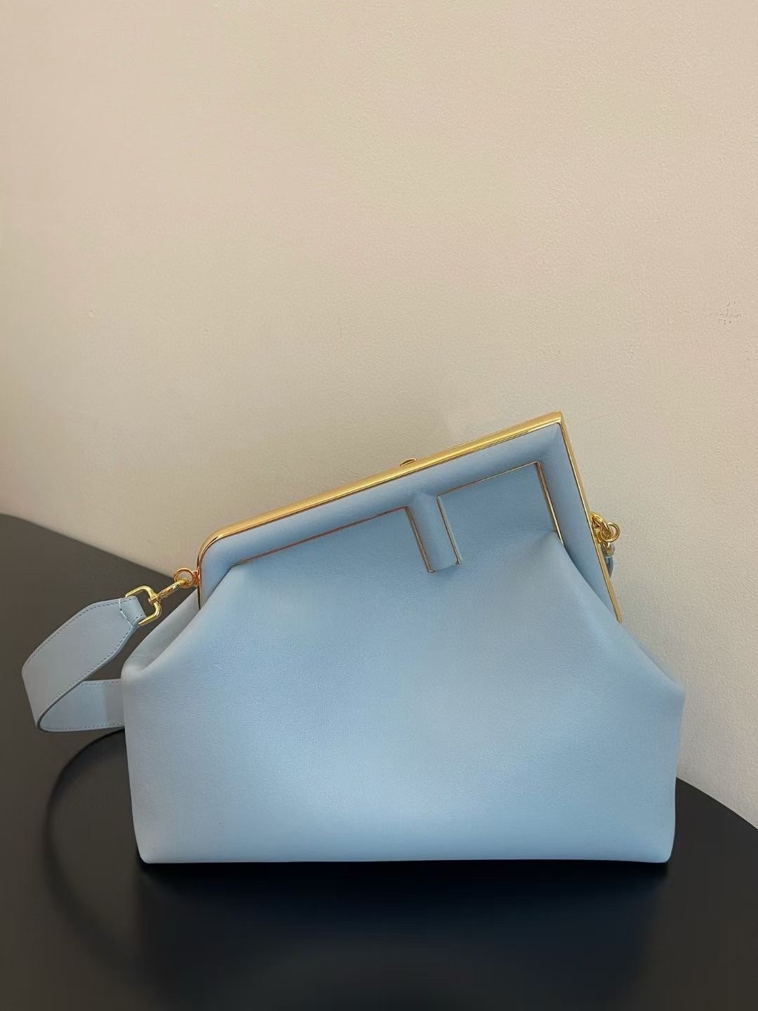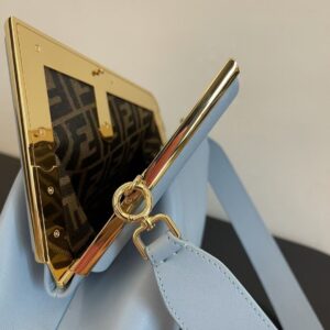 – Oversized metal F clasp bound with tone on tone nappa leather