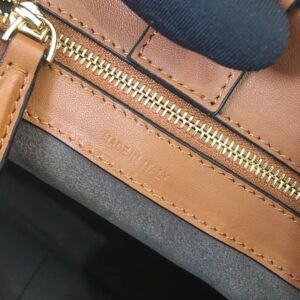 – Suede lining with two flat pockets and one zipped pocket