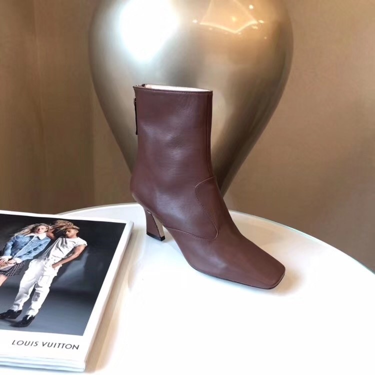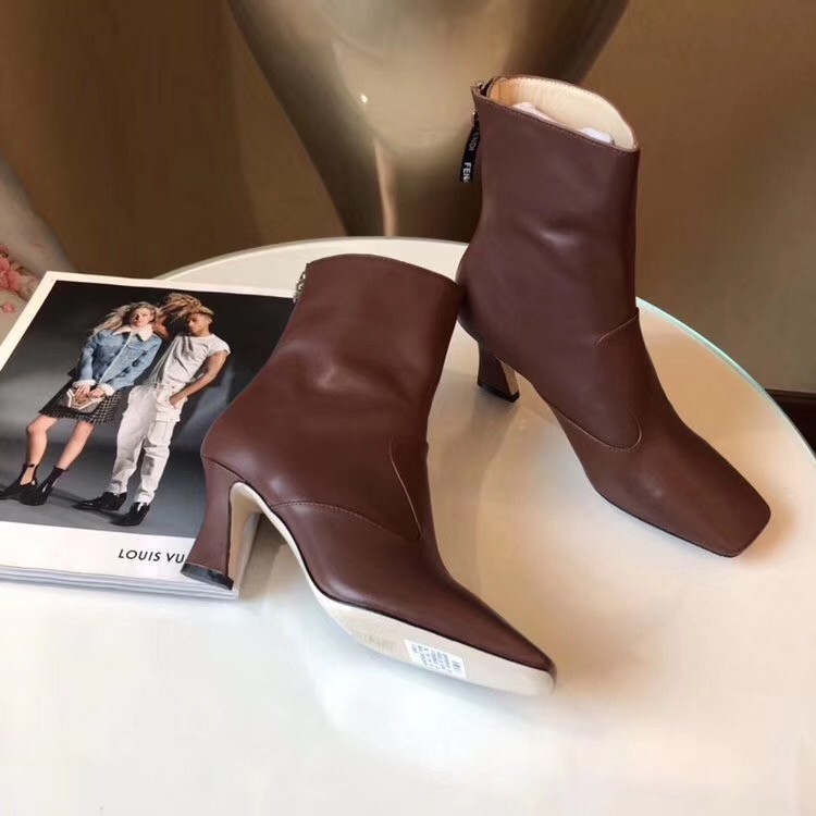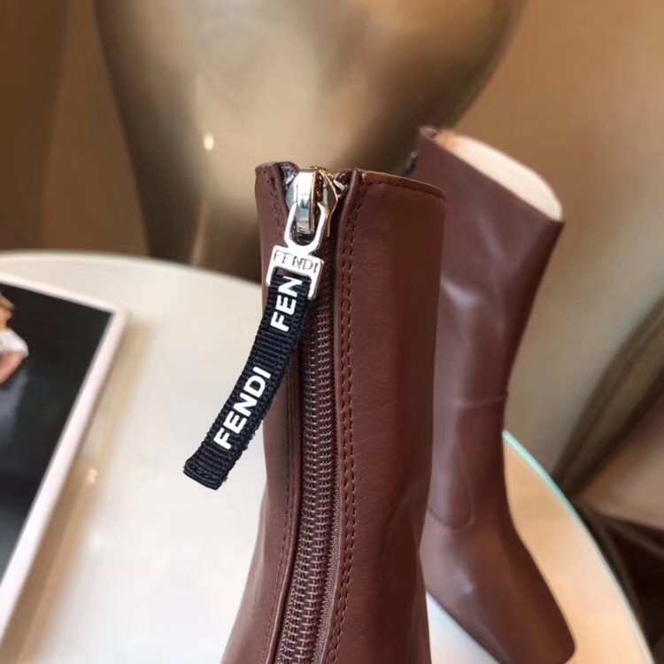 Fendi Square Toe Ankle Boots In Brown Lambskin