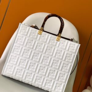 Fendi Sunshine Medium Tote Bag In White FF Calfskin