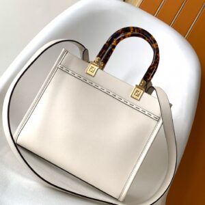 Fendi Sunshine Small Tote Bag In White Calfskin