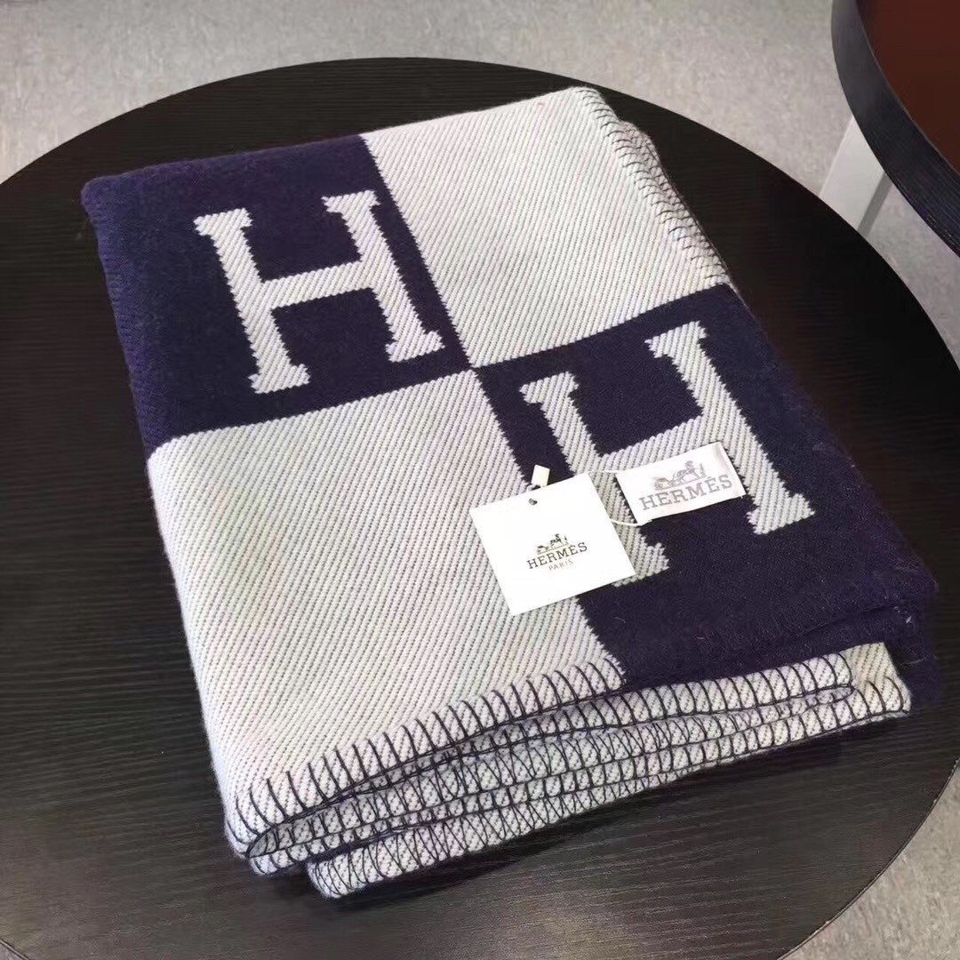 Hermes Avalon Blanket In Blue Wool and Cashmere