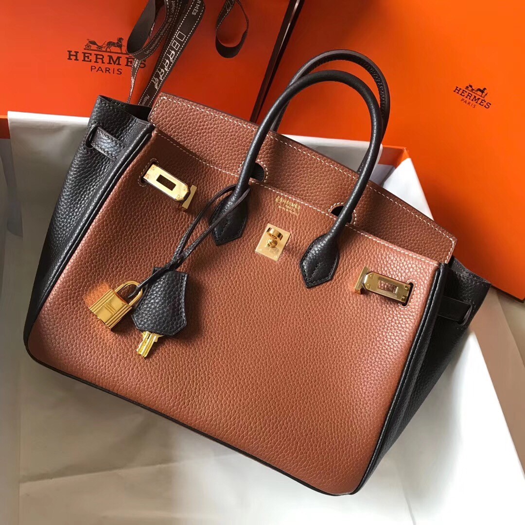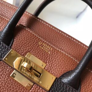 Hermes Bi-Color Birkin 25cm Bag In Brown/Black Clemence Leather
