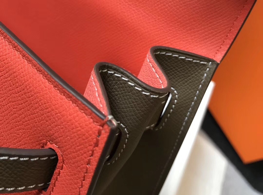 Hermes Bi-color Kelly 32cm Epsom Bag Piment/Taupe GHW