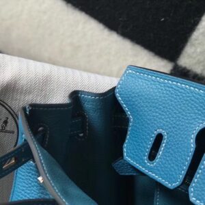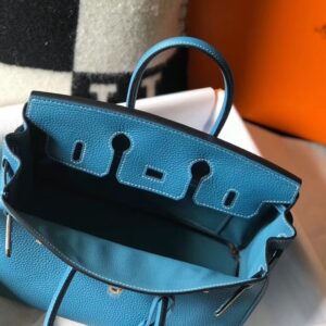 Hermes Birkin 25cm Bag In Blue Jean Clemence Leather