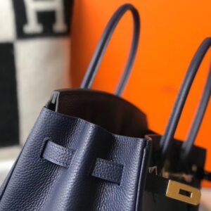 Hermes Birkin 35cm Bag In Navy Blue Clemence Leather