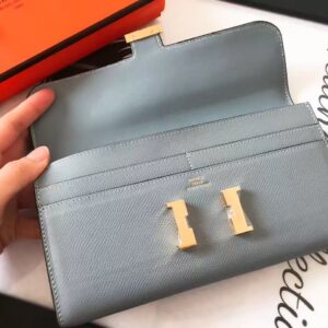 Hermes Blue Lin Epsom Constance Long Wallet