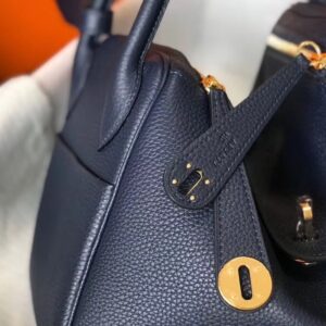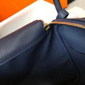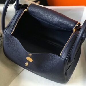 Hermes Dark Blue Clemence Lindy 30cm Bag with GHW