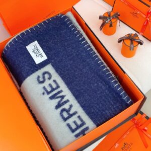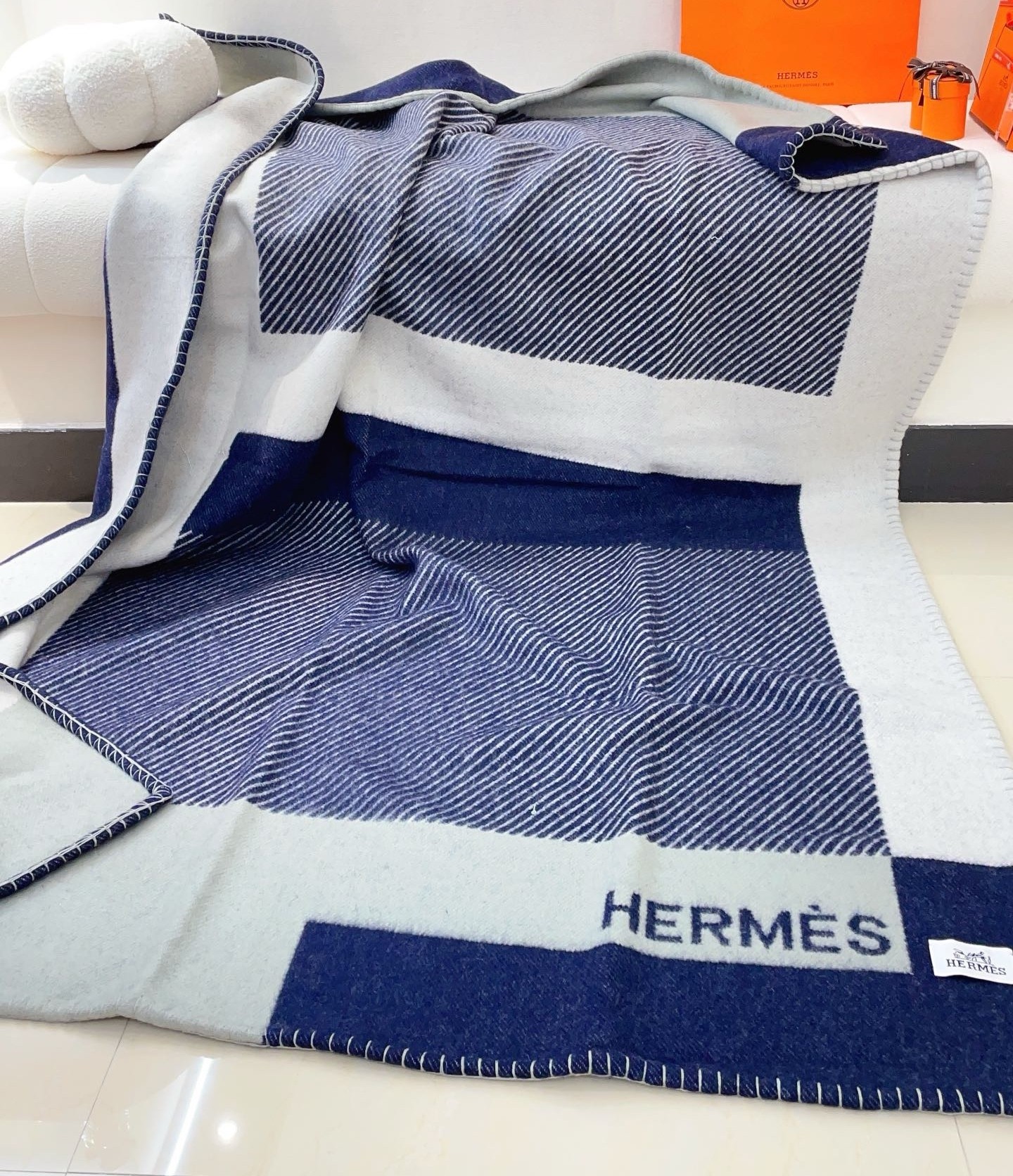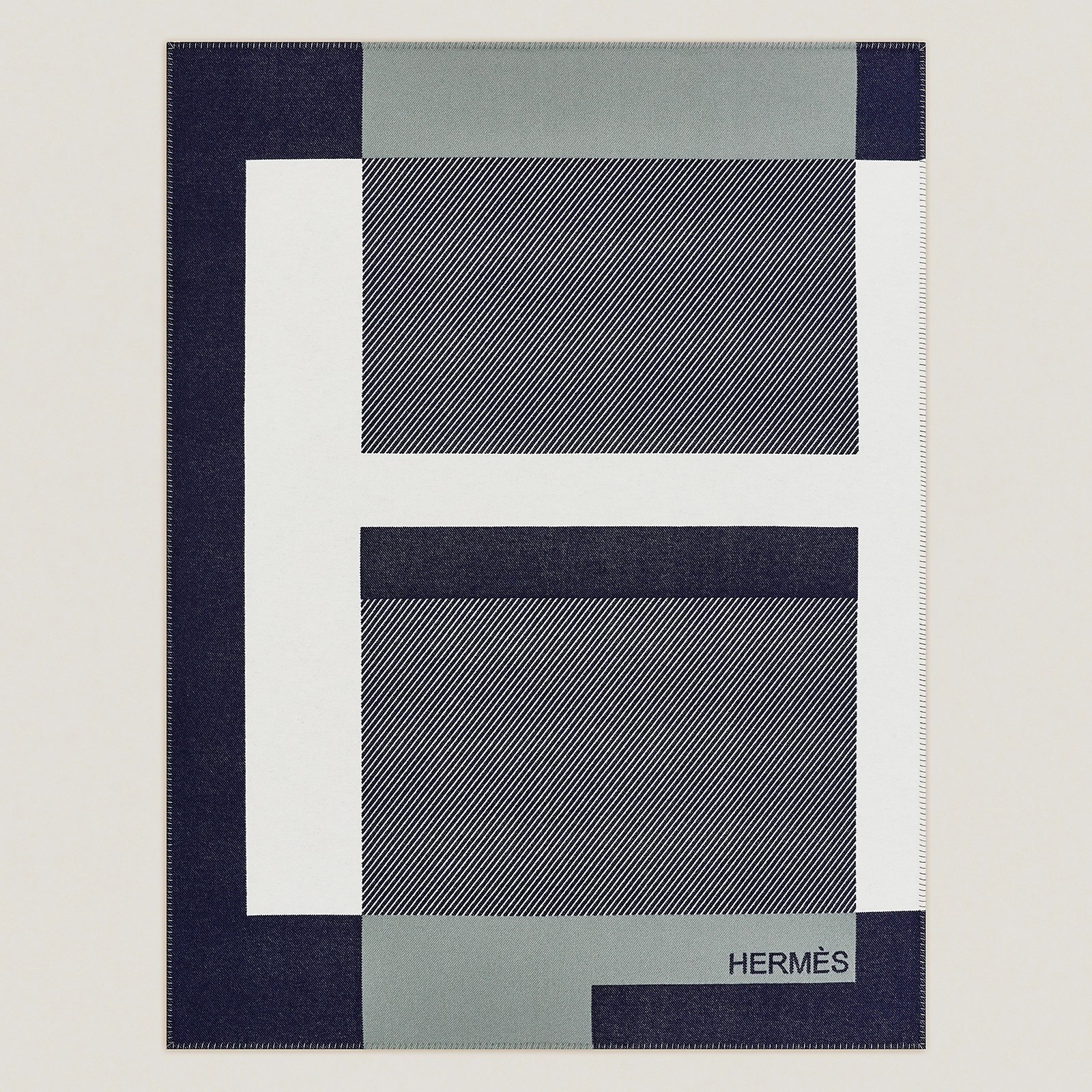 Hermes H Riviera Blanket in Marine Wool and Cashmere