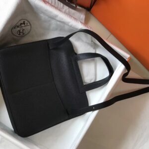 Hermes Halzan 31cm Bag In Black Clemence Leather
