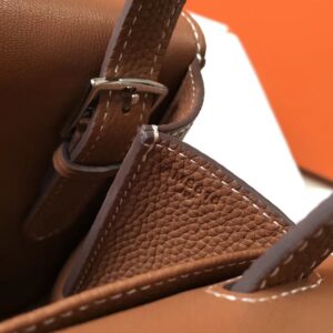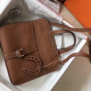 Hermes Halzan 31cm Bag In Gold Clemence Leather