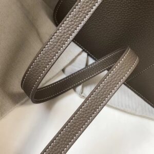 – Two short flat leather handles with 10 cm drop