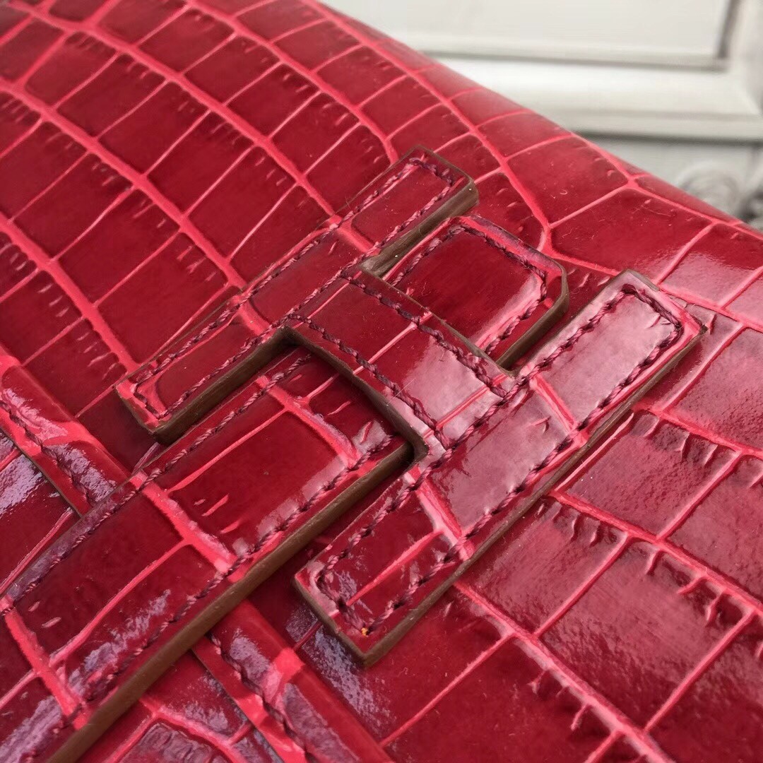 Hermes Jige Elan 29 Clutch In Dark Red Crocodile Leather
