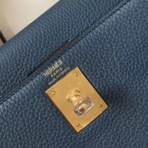 Hermes Kelly 28cm Retourne Bag In Blue Agate Clemence Leather