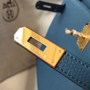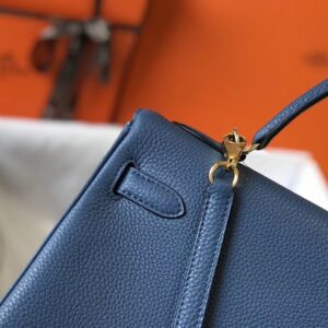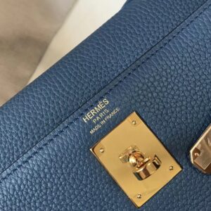 Hermes Kelly 32cm Retourne Bag In Blue Agate Clemence Leather