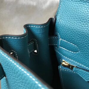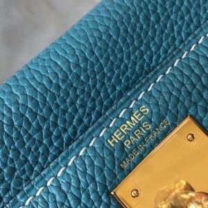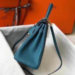 Hermes Kelly 32cm Retourne Bag In Blue Jean Clemence Leather
