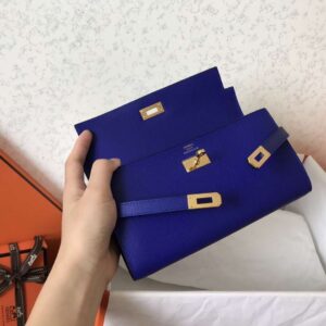 Hermes Kelly Classic Long Wallet In Blue Electric Epsom Leather