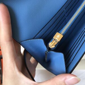 Hermes Kelly Classic Long Wallet In Blue Jean Epsom Leather