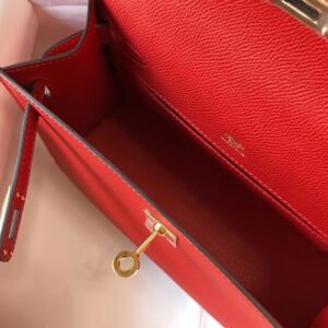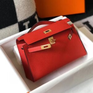 Hermes Kelly Pochette Bag In Red Epsom Leather